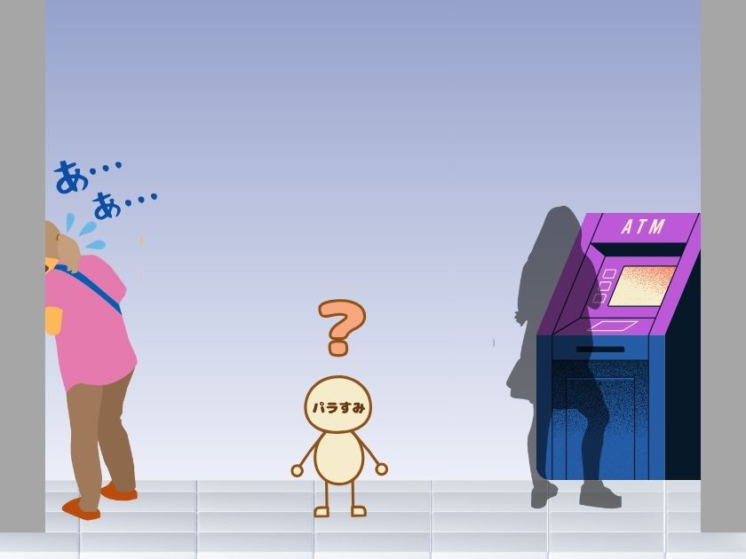 ちょうど女性がATMを使っているところだったので、後ろに並ぼうとしたら、反対側の柱の影に誰かいたんです。