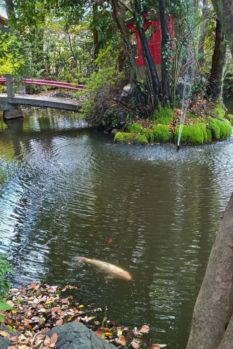 池に鮒は確認できなかったけど、立派な錦鯉がいました。片目であったかどうかは不明です。