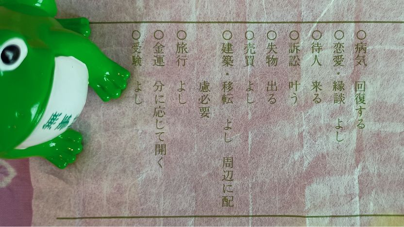 ピンクの御縁蛙さんは大吉でした。にんまり。