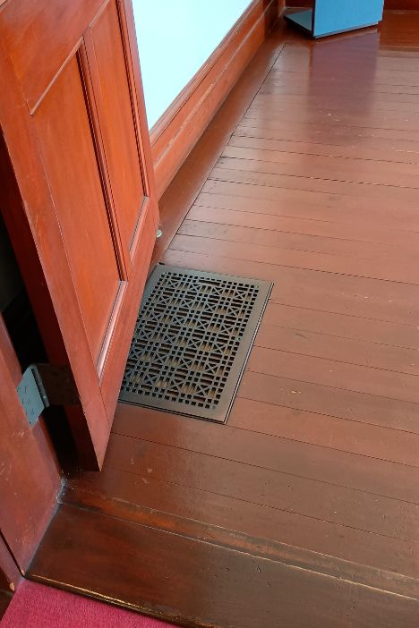 応接室のドア近くのコレは、近くの暖炉から暖気を送る穴なのでしょうか?間違ってる確率99%の思いつきです。