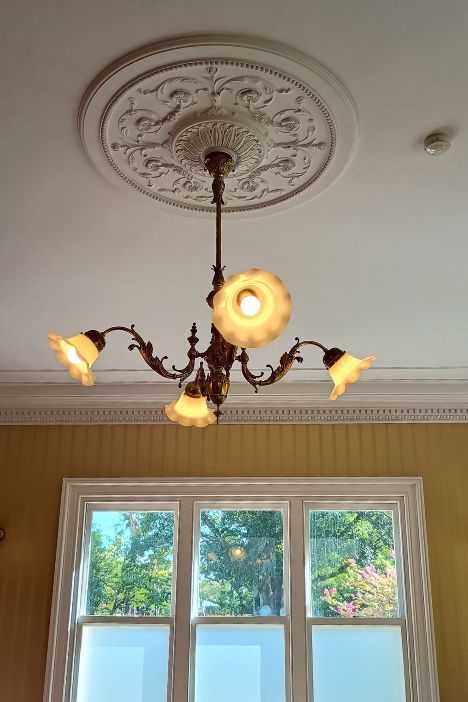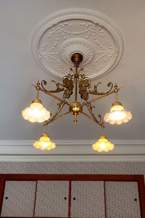 居間の照明もなかなか素敵ですが、客間と比べるとあっさりしています。