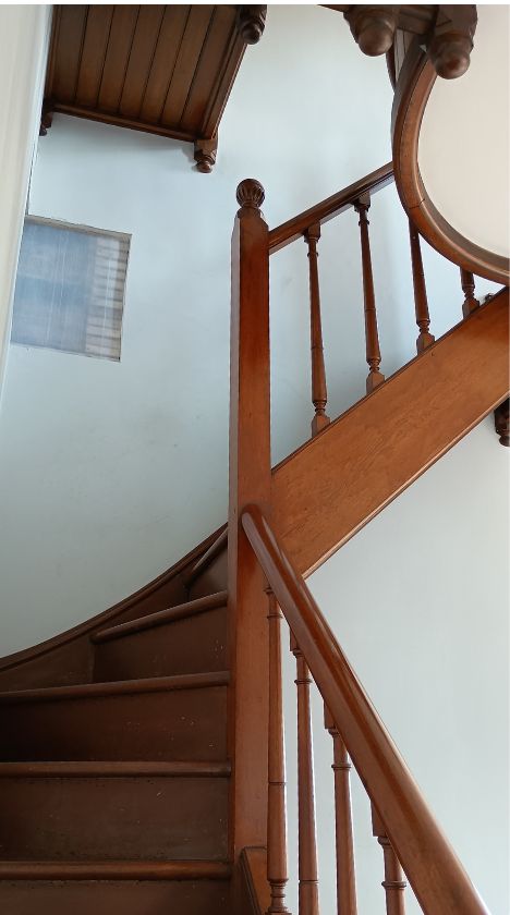 2階には塔屋の3階へ上がる細い階段があります。が、立入禁止でした。