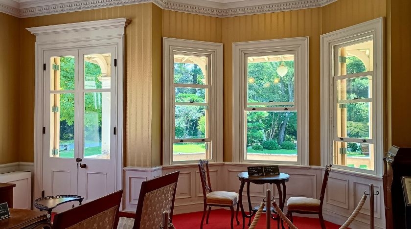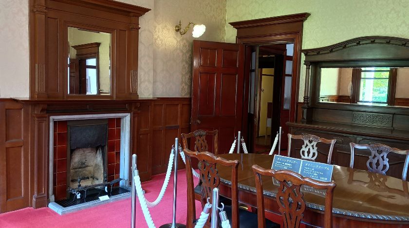 ここだけ木部が白で統一されています。特別感があります。家具等は当時のものではないとの表示がありました。