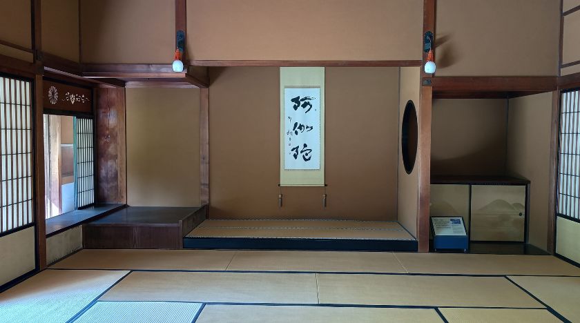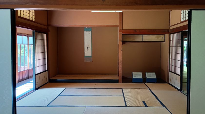 洋館の女中室のそばに出入り口があり、階段を数段下りると、二間続きの和室になっています。