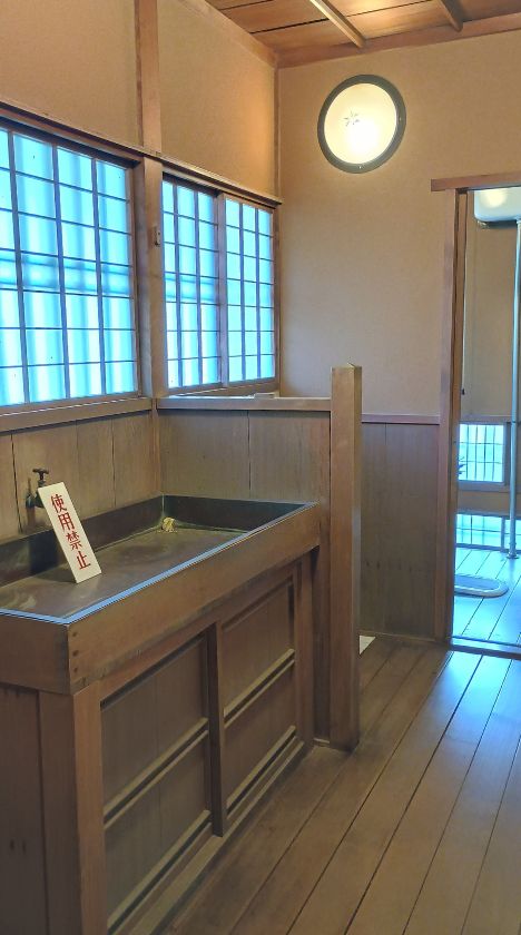 床は板張りです。手洗い場の右の空間は小便器があるのでしょうか?残念ながら見えませんでした。