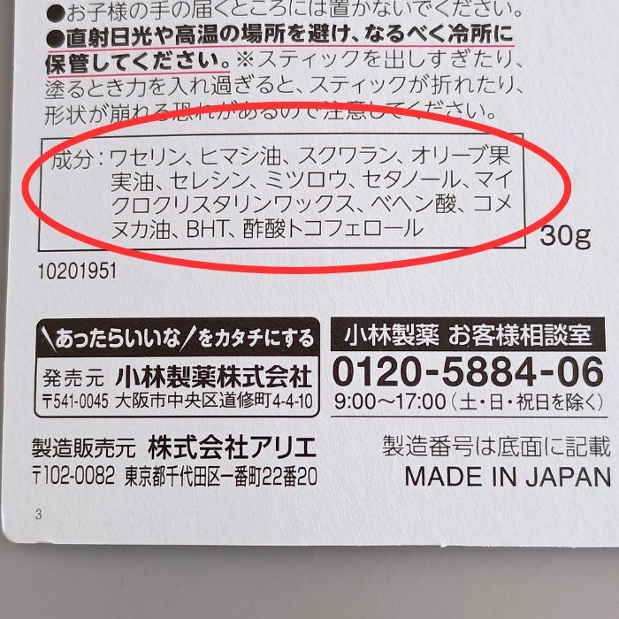 そして安心の Made in Japan 。小林製薬さん、ありがとうございます。