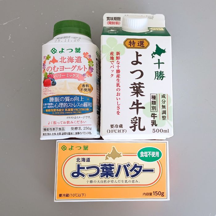 定番のコーヒーに入れる牛乳と、無塩バター。